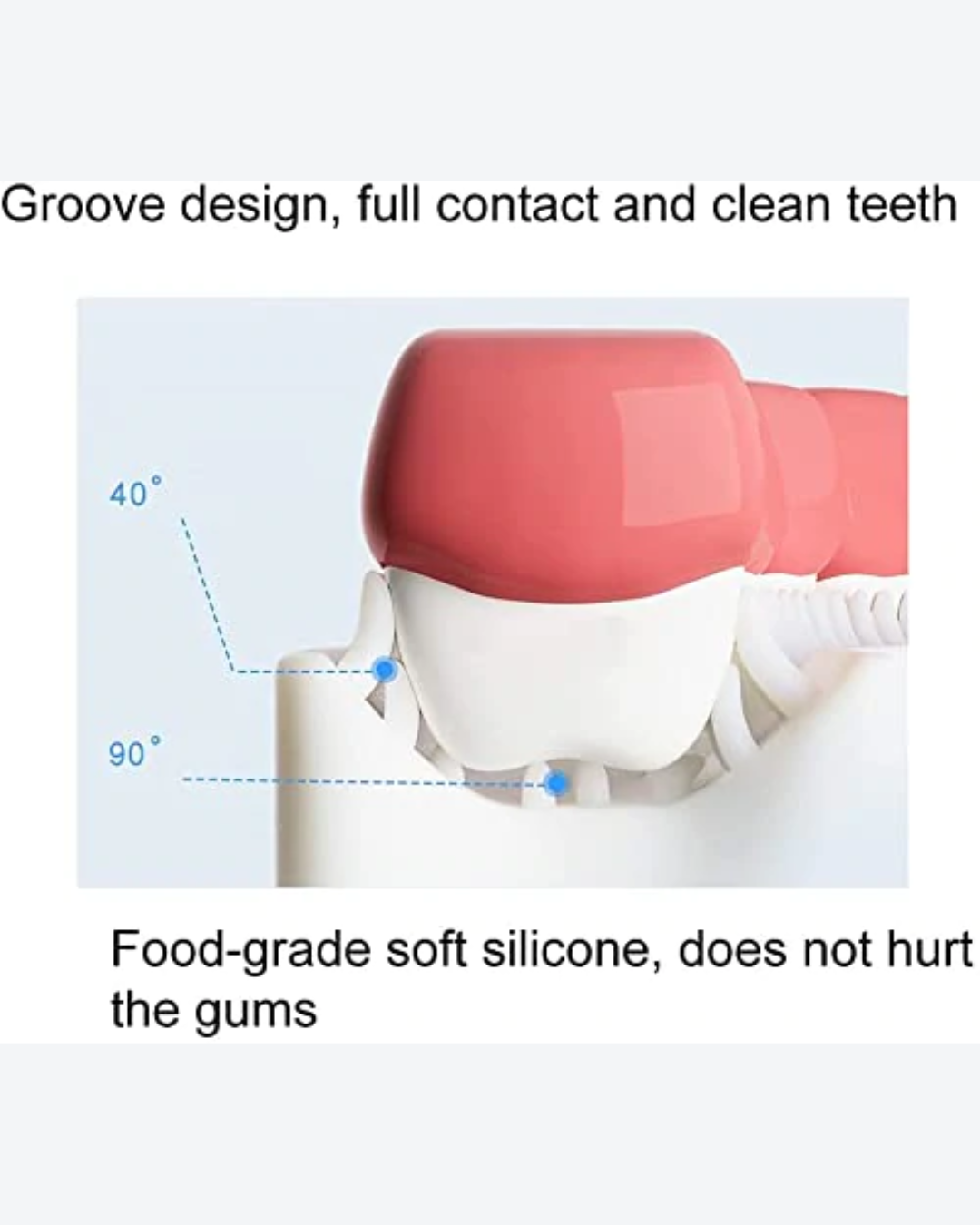 • Soft pacifier grade silicone, soft brim around the teeth 360 degrees, providing a comfortable feeling of brushing, the original cleaning path, effective deep cleaning, will not harm the gums, protect children’s enamel.
