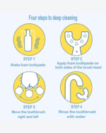The brush can brush and clean the teeth in 360 degrees, specially designed for children’s tender and sensitive teeth; It can clean and massage the oral cavity, especially suitable for children’s growth and sensitive teeth; The cleaning effect is better when applied with foaming toothpaste. Say goodbye and end the fight with traditional toothbrushes.